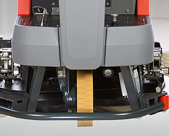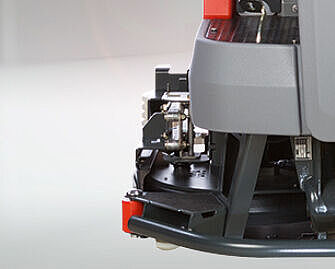 This ride-on scrubber-drier is extremely flexible in every-day use. When equipped with two cylindrical brushes, it enables sweeping and scrubbing in a single working step. The Scrubmaster B120 R can be equipped with either disc- or cylindrical brushes to meet individual cleaning requirements. Changing from disc- to cylindrical brushes and vice versa is particularly easy thanks to the upward-opening side strippers.