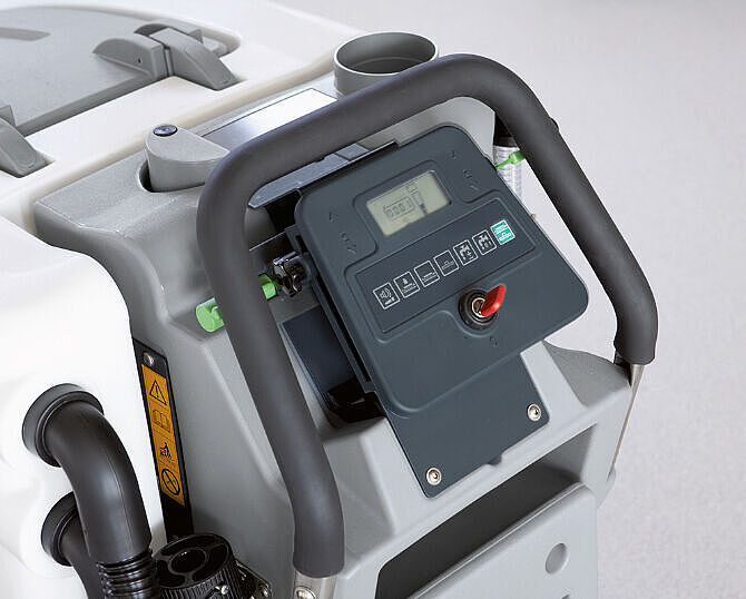 Optimised for economically efficient use: the walk-behind scrubber-drier Scrubmaster B90 CL. The heavy-duty design – the machine is equipped with a brush unit and squeegees made of die-cast aluminium – makes this Scrubmaster particularly reliable while minimising repair costs and downtimes. The flat brush deck (less than 10 cm high) ensures easy cleaning under racks and shelves, and speed-dependent water dosing provides particularly long operating times. In addition, optimised ergonomics, intuitive handling and various innovations that reduce the consumption of water and cleaning detergents are important factors in making this machine highly productive.
