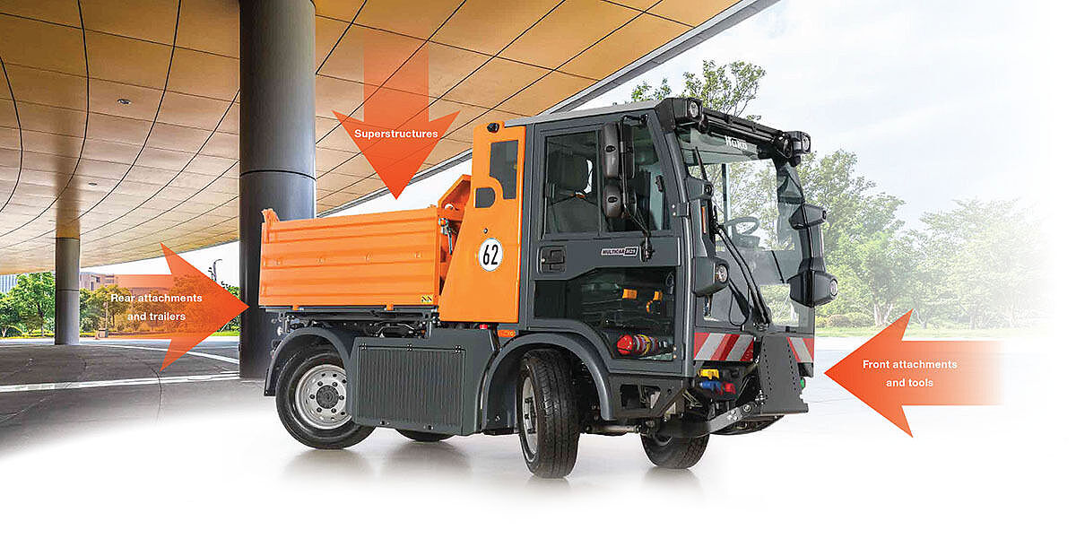 | Frame | welded ladder frame; cranked and inclined at the front for easy access; possibility of feeding through a suction hose (central suction, e.g. mower-suction combi) |