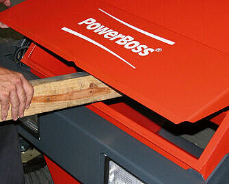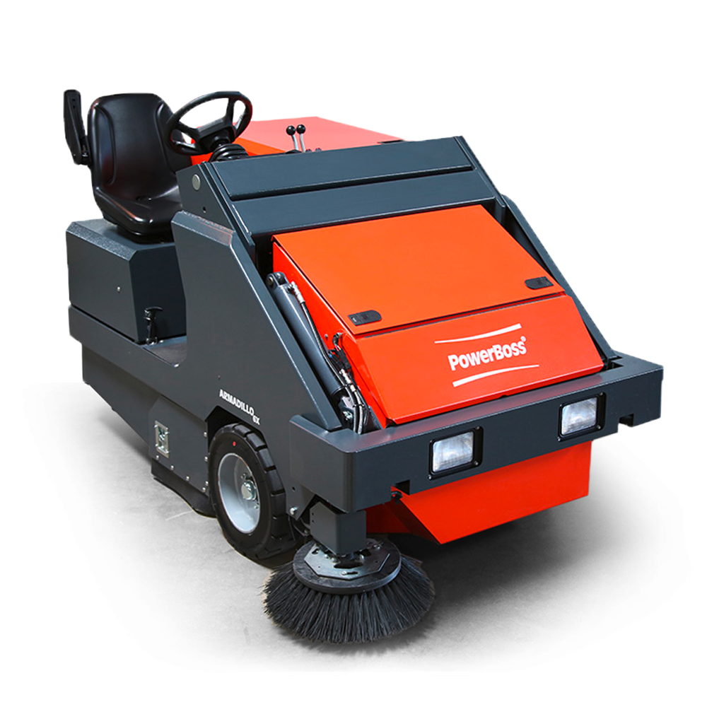Auch größte Schmutzmengen in anspruchsvollen Arbeitsumgebungen bewältigt der PowerBoss Armadillo zuverlässig. Bei einer Arbeitsbreite von bis zu 193 cm mit zwei Seitenbesen wird das Kehrgut in den 600 Liter – das entspricht ca. 500 kg – fassenden Kehrgutbehälter aus robustem Stahlblech befördert. Zur leichten Entleerung kann dieser auf bis zu 1,62 m Höhe angehoben werden.