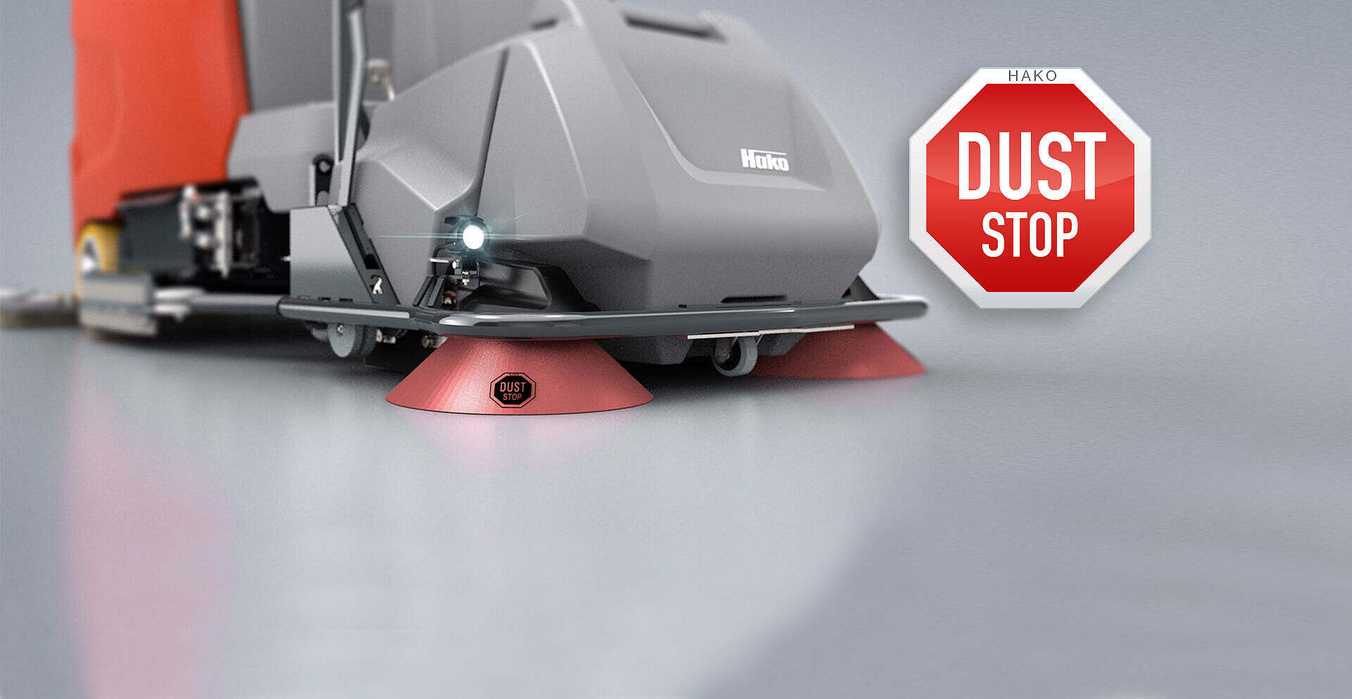 Dust Stop eignet sich für Hako Sweepmaster, Scrubmaster mit Kehrsaugvorsatz sowie die Scrubmaster B400 RH und B400 RM.