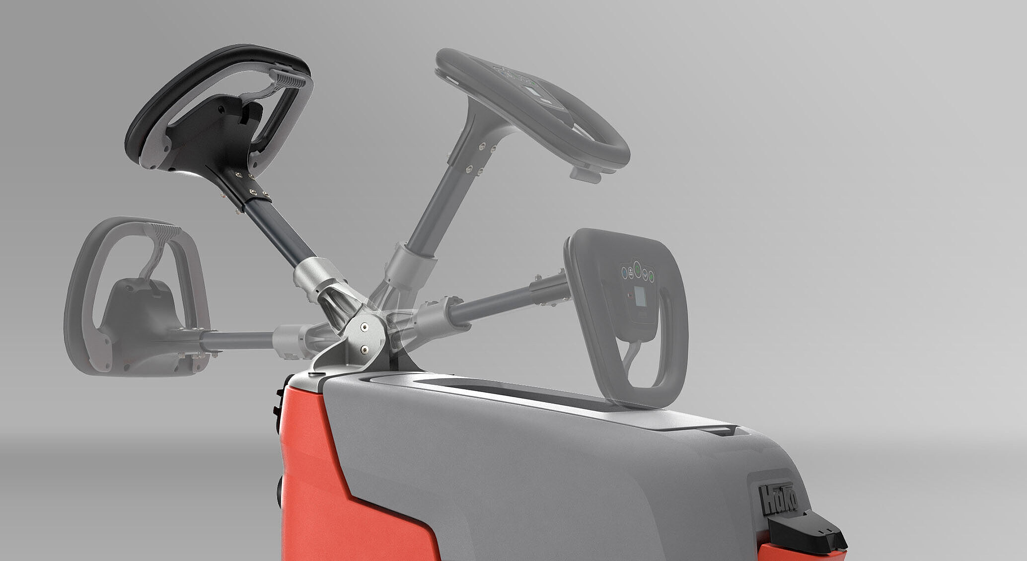 Gut manövrierbar: Der verstellbare Bedienholm erleichtert das Wegfahren von der Wand und ermöglicht das Unterfahren von Möblierung wie zum Beispiel Tischen.